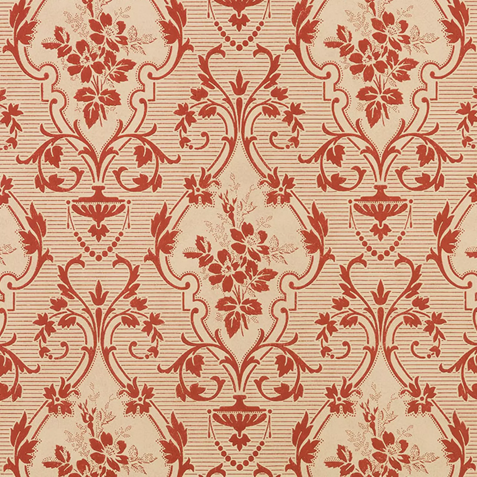1800-luvun loppupuolen tyypillinen tapettimalli elegantilla medaljonkikuviolla. Malli löytyi Gysingen Nästgårds-näyttelyrakennuksen tapettikerroksista, salin seinältä. Tapetti oli luultavasti asennettu vuonna 1887.