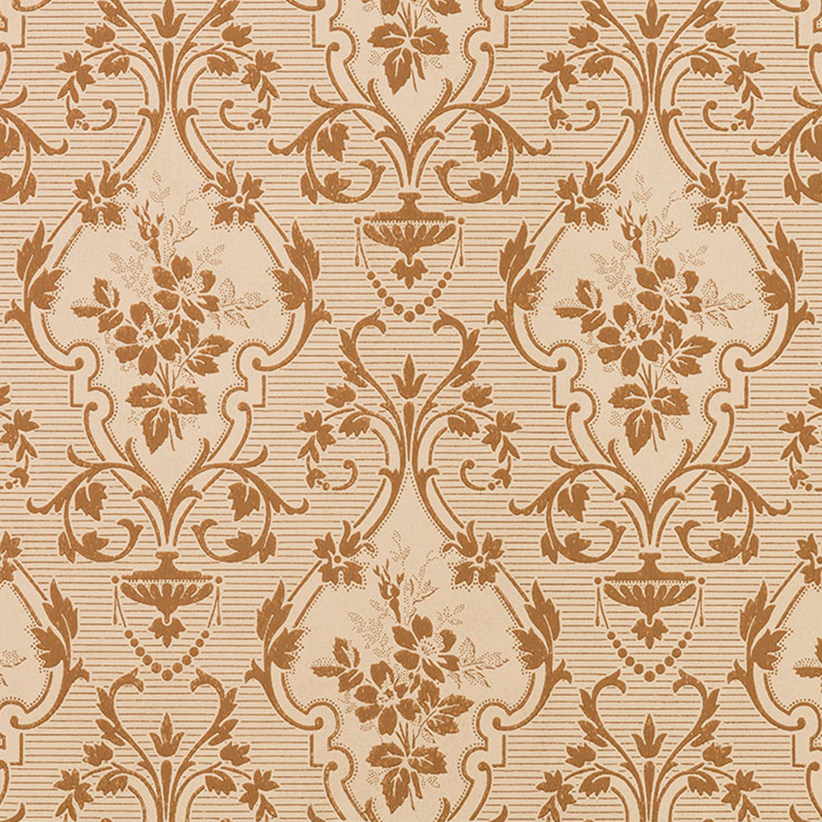 1800-luvun loppupuolen tyypillinen tapettimalli elegantilla medaljonkikuviolla. Malli löytyi Gysingen Nästgårds-näyttelyrakennuksen tapettikerroksista, salin seinältä. Tapetti oli luultavasti asennettu vuonna 1887.
