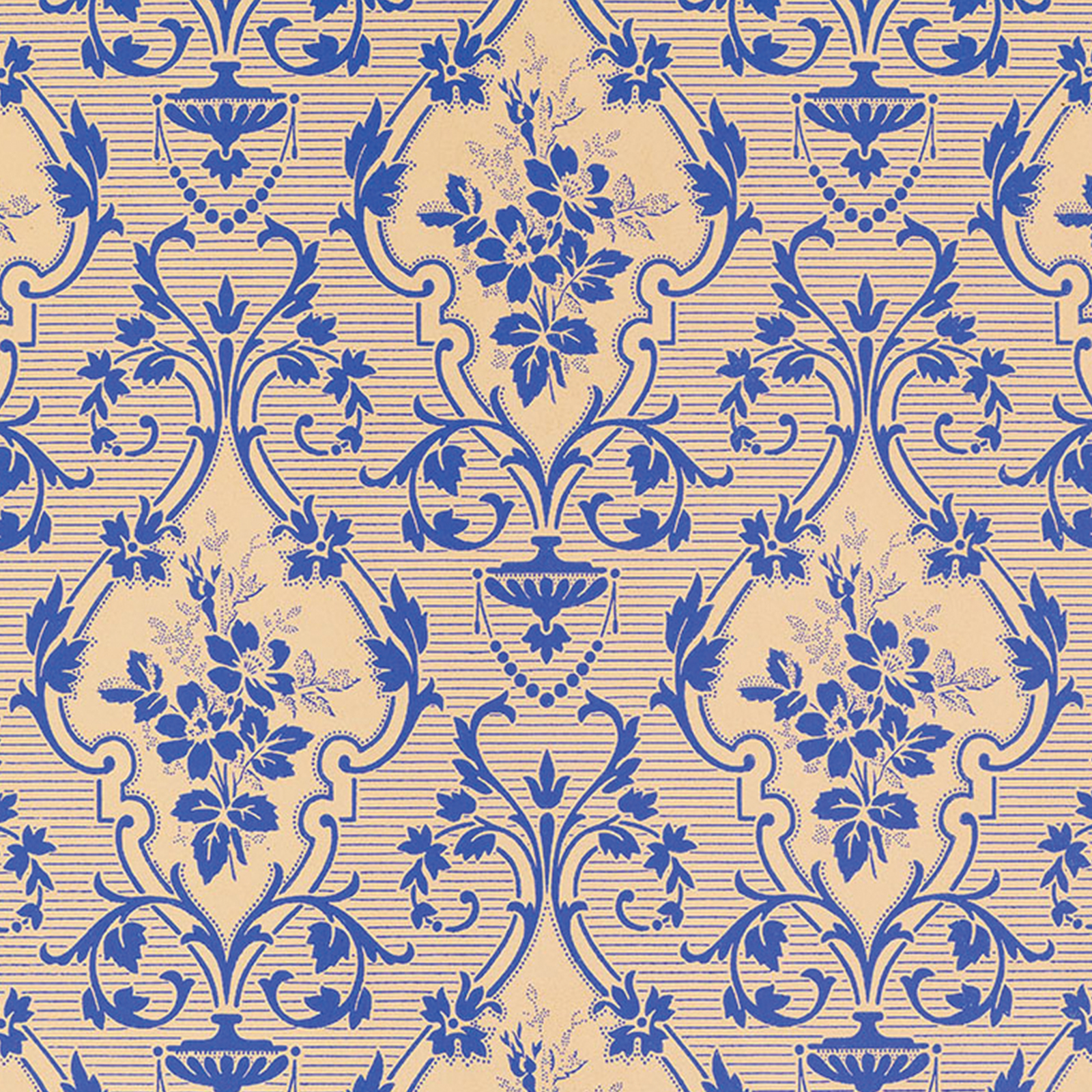 1800-luvun loppupuolen tyypillinen tapettimalli elegantilla medaljonkikuviolla. Malli löytyi Gysingen Nästgårds-näyttelyrakennuksen tapettikerroksista, salin seinältä. Tapetti oli luultavasti asennettu vuonna 1887.