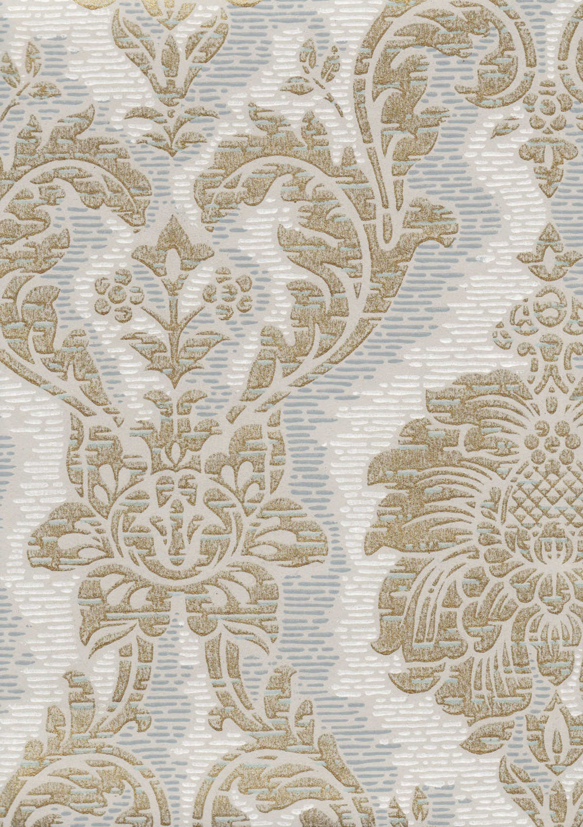 Uusrenessanssihenkinen Sametti on runsas tapettimalli, jonka kuviointi tuo mieleen pehmeän sametin.