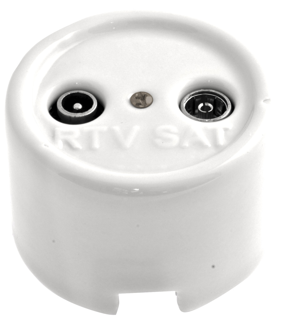 Seinän pintaan asennettava valkoinen RTV/SAT -pistorasia, yksittäinen (U).