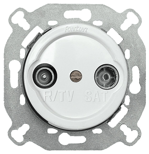 Seinään uppoasennettava valkoinen RTV/SAT -pistorasia, yksittäinen (U).