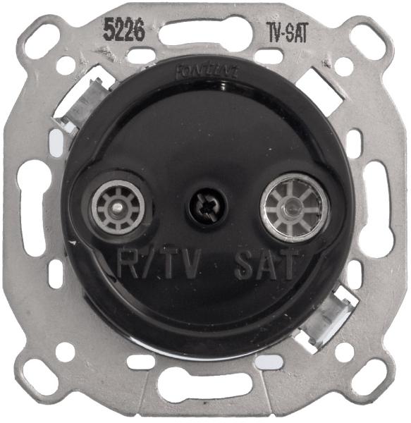 Seinään uppoasennettava musta RTV/SAT -pistorasia, yksittäinen (U).
