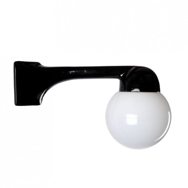Valaisinrunko on valualumiinia ja pallokupu opaalilasia. Runko maalattu mustaksi.