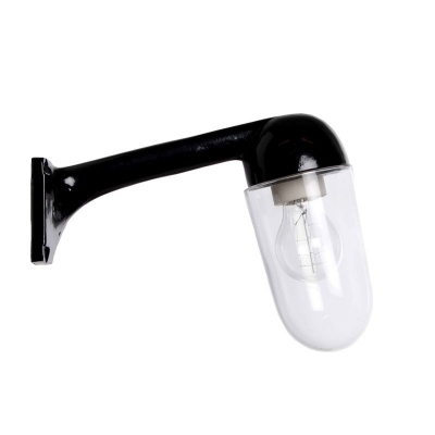 Valaisinrunko on valualumiinia ja luotikupu kirkasta lasia. Runko maalattu mustaksi.