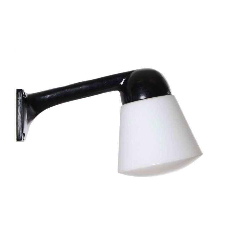 Valaisinrunko on valualumiinia ja kartion mallinen kupu opaalilasia. Runko maalattu mustaksi.