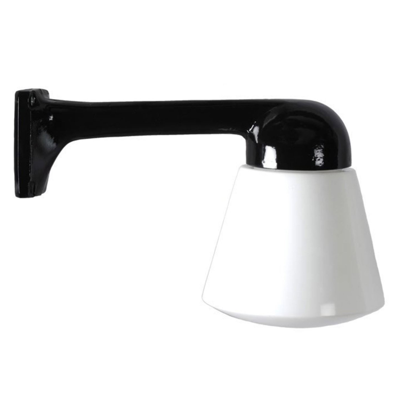 Valaisinrunko on valualumiinia ja kartion mallinen kupu opaalilasia. Runko maalattu mustaksi.