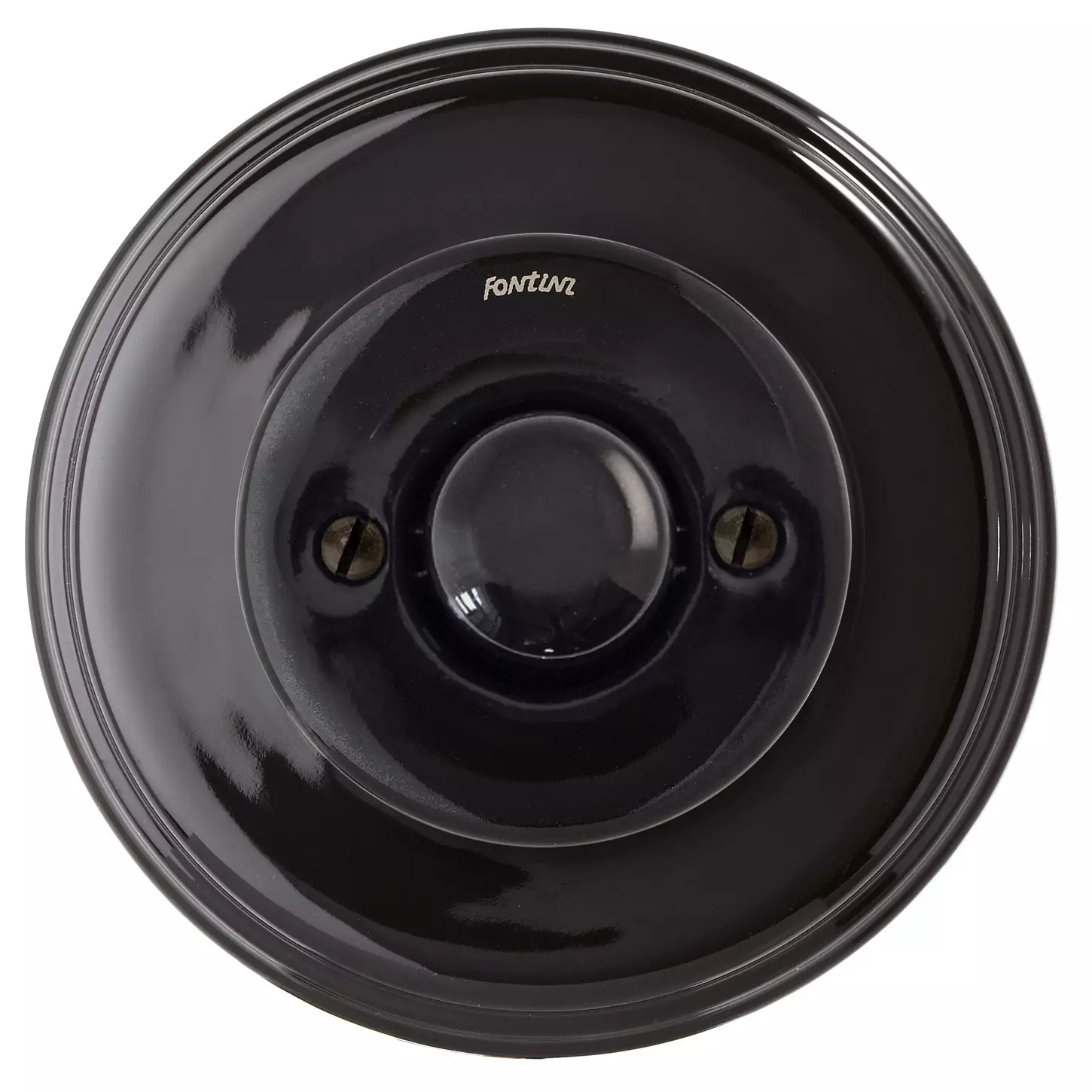 Posliini, musta. Kiinnitysruuvit ovat patinoitua messinkiä.
