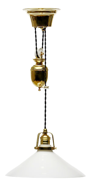 Tuote Hissivalaisimen voi nostaa lähemmäs kattoa yleisvaloksi tai laskea alas työvaloksi pöydän päälle. Tämä valaisin on tehty tarkalleen vanhan mallin mukaan!