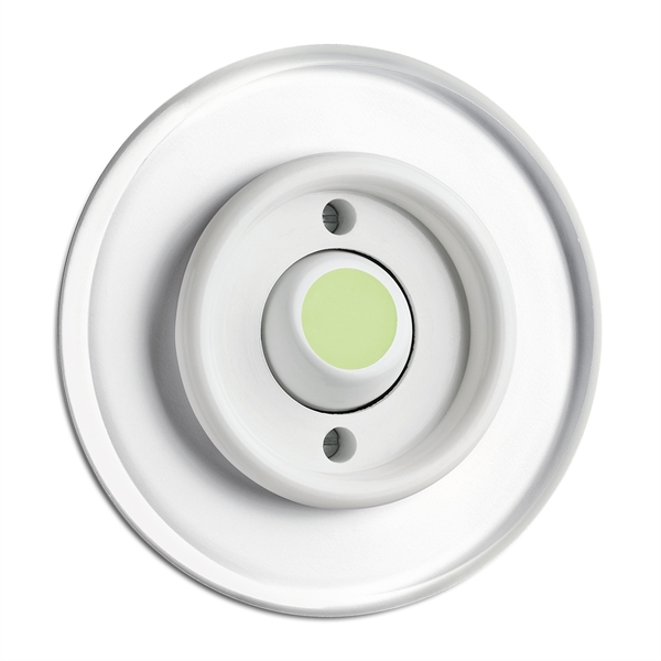 Keskellä painonappia on valoa itseensä varastoiva pigmenttikenttä, joka jää hehkumaan, kun valot sammuvat. Tämä kytkin sopii oivallisesti kerrostalon porraskytkimeksi.