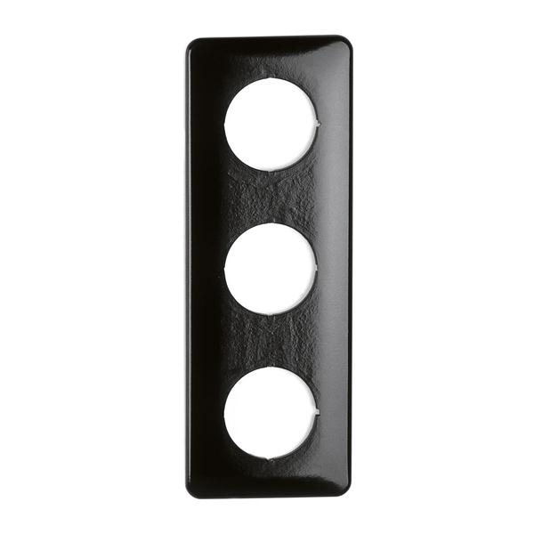Seinään uppoasennettavan mustan sähkökalusteen kehys, kolmelle katkaisimelle tai kytkimelle.