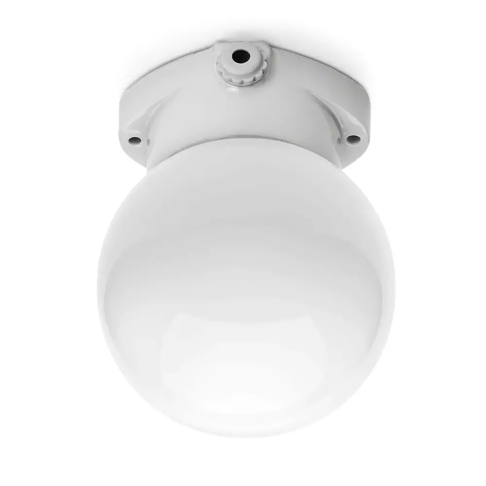 Kattoon tai seinään kiinnitettävä posliininen valaisin, opaalikuvulla.
