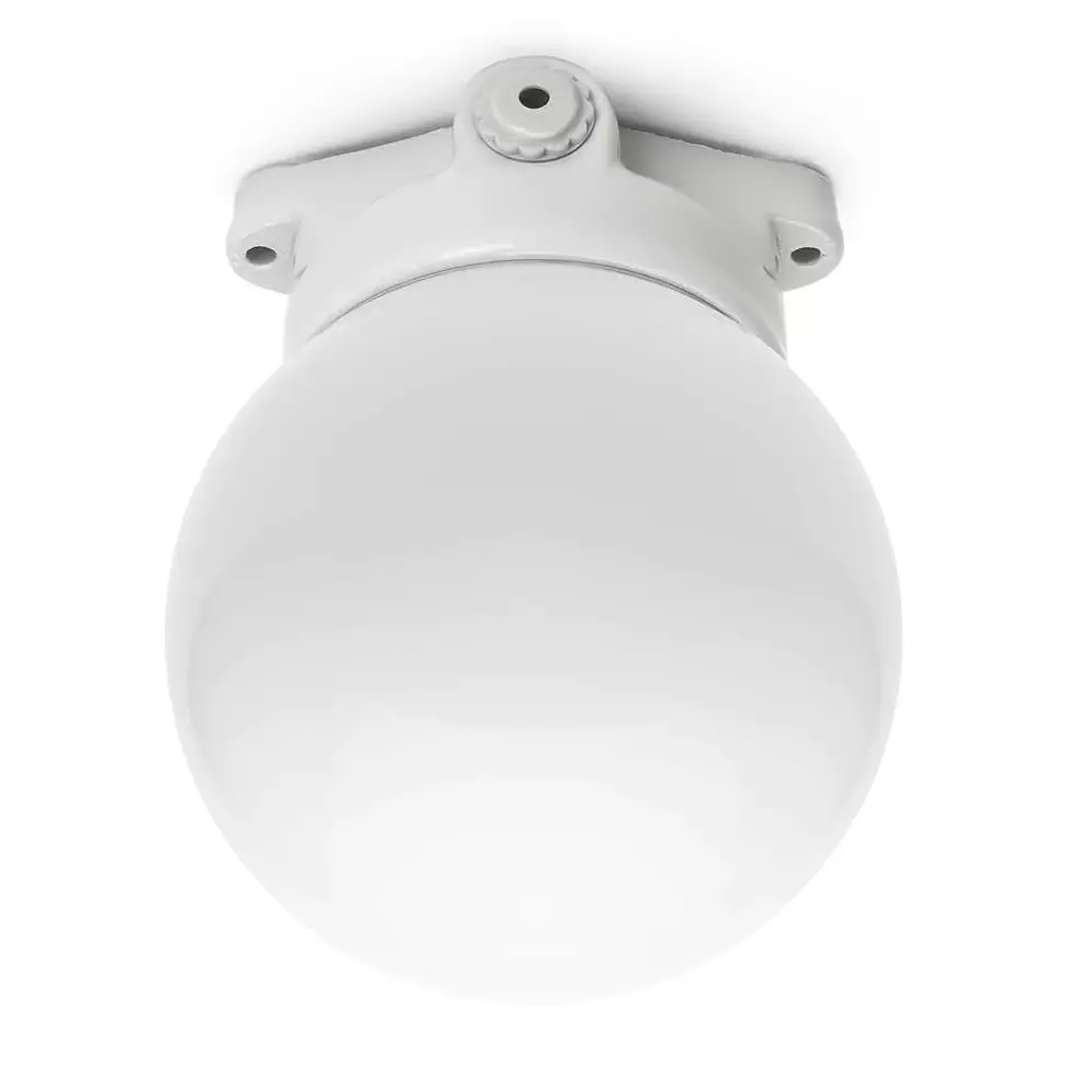 Kattoon tai seinään kiinnitettävä posliininen valaisin, opaalikuvulla.