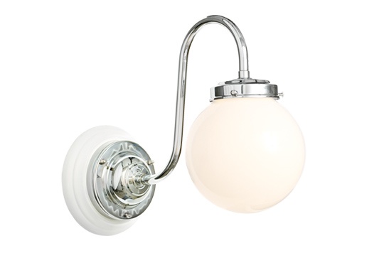 Valaisinrunko messinkiä, kromattu. Kupu lasia, valkoinen.