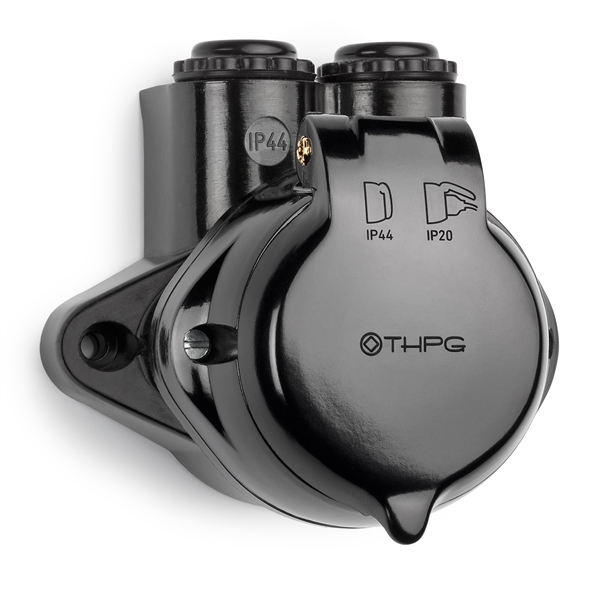 Pinta-asennettava pistorasia on asennettavissa ulos tai kosteisiin tiloihin. Vaakasuuntaisiin asennuksiin yhdelle tai useammalle pistorasialle, esim. asennettuna eri puolilla samaa huonetta. Kaksiosainen kotelo ja kansi bakeliitista vierekkäisillä sisään- ja ulostuloloilla.