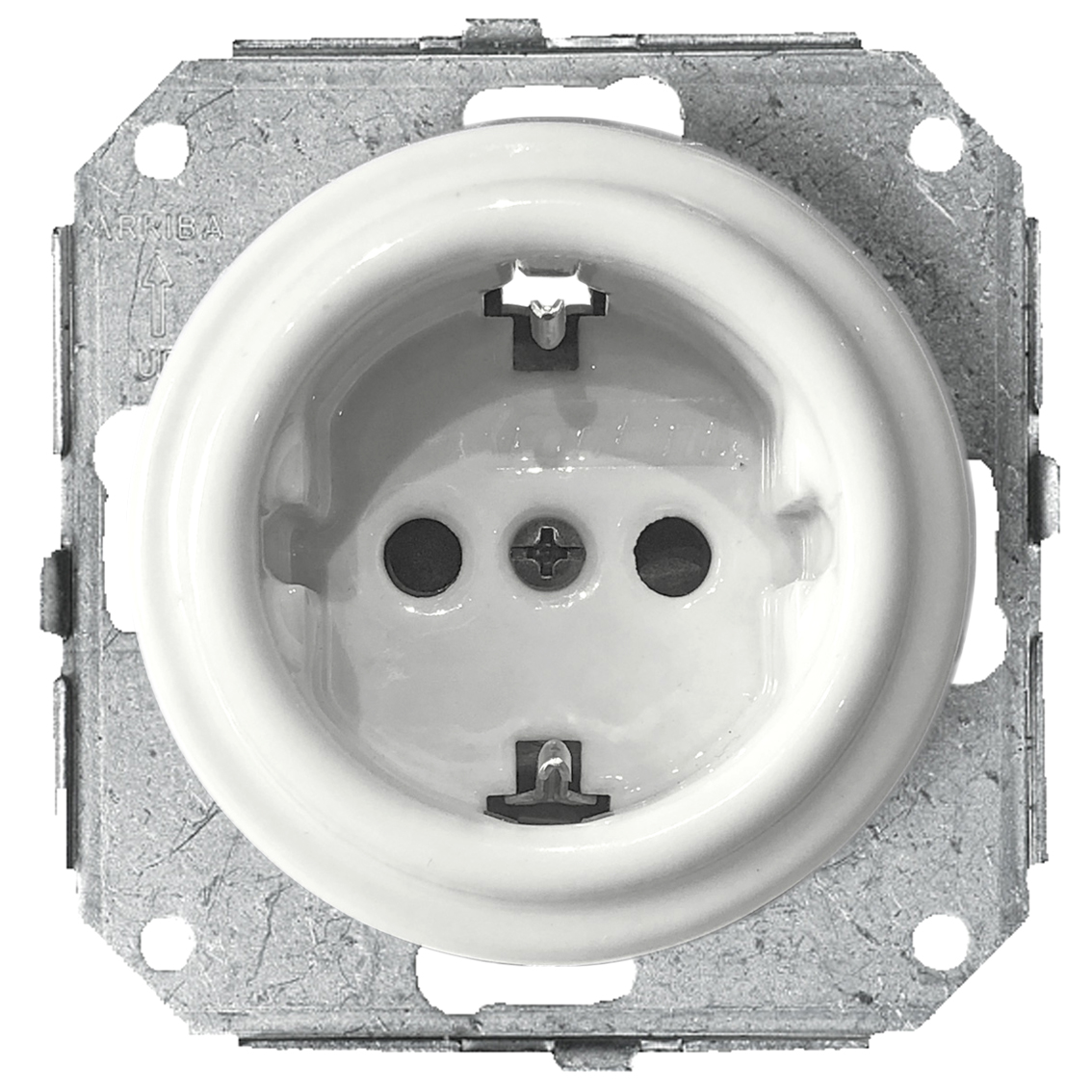 Uppoasennettava posliininen sähkörasia ilman kehystä on tarkoitettu monikkoasennuksiin. Samaan kehykseen voi asentaa kaksi tai kolme eri pistorasiaa tai katkaisinta.