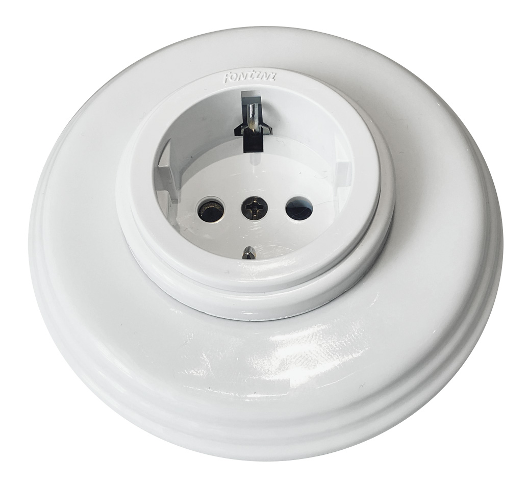 Tämä pistorasia on muovisella sisäosalla, kehys posliinia.