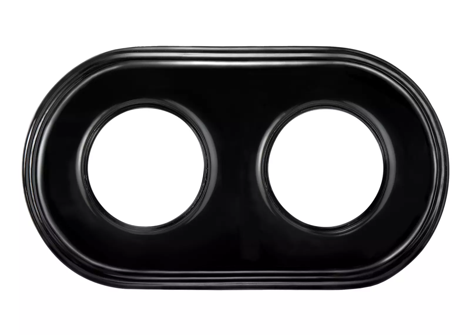 Seinään uppoasennettavan sähkökalusteen musta posliininen kehys, kahdelle kytkimelle tai pistorasialle.