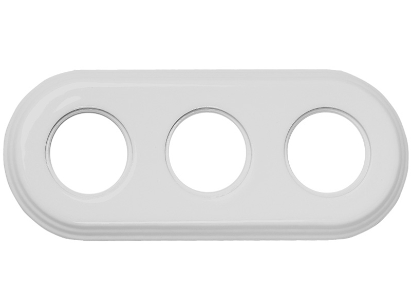 Seinään uppoasennettavan valkoisen sähkökalusteen kehys, kolmelle katkaisimelle tai kytkimelle.