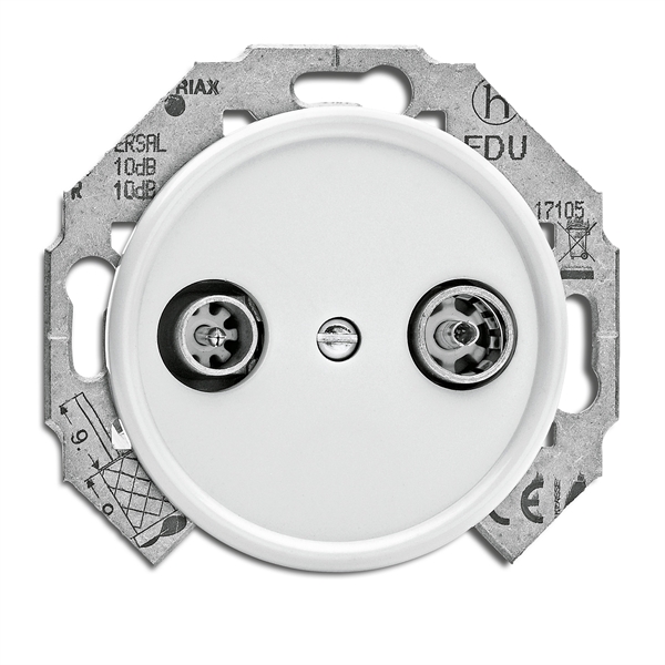 Tekniset tiedot Antennirasia radio- ja tv- järjestelmille, ketjutettava ja päättyvä. DIN 45330. Rasia asennetaan normaaliin kojerasiaan. Rasia on CE-hyväksytty (VDE). Käytä sähkökalusteen kuoren asennuksessa ainoastaan käsityökaluja.