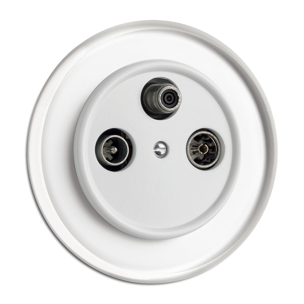 Antennirasia radio- ja tv- järjestelmille, sateliittiliitäntä (F-adapteri), päättyvä. DIN 45330. Rasia asennetaan normaaliin kojerasiaan. Rasia on CE-hyväksytty (VDE). Käytä sähkökalusteen kuoren asennuksessa ainoastaan käsityökaluja.