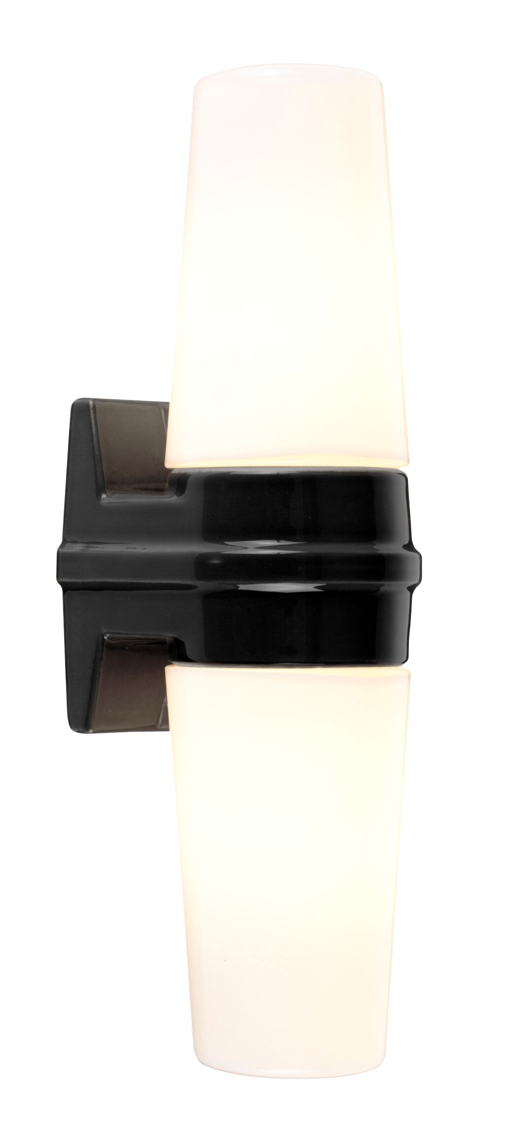 Seinään kiinnitettävä posliininen valaisin kahdella lasikuvulla.