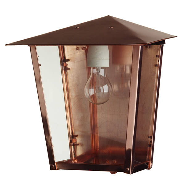 Kuparista käsityönä valmistettu ulkovalaisin sopii mm. terassin seinävalaisimeksi.