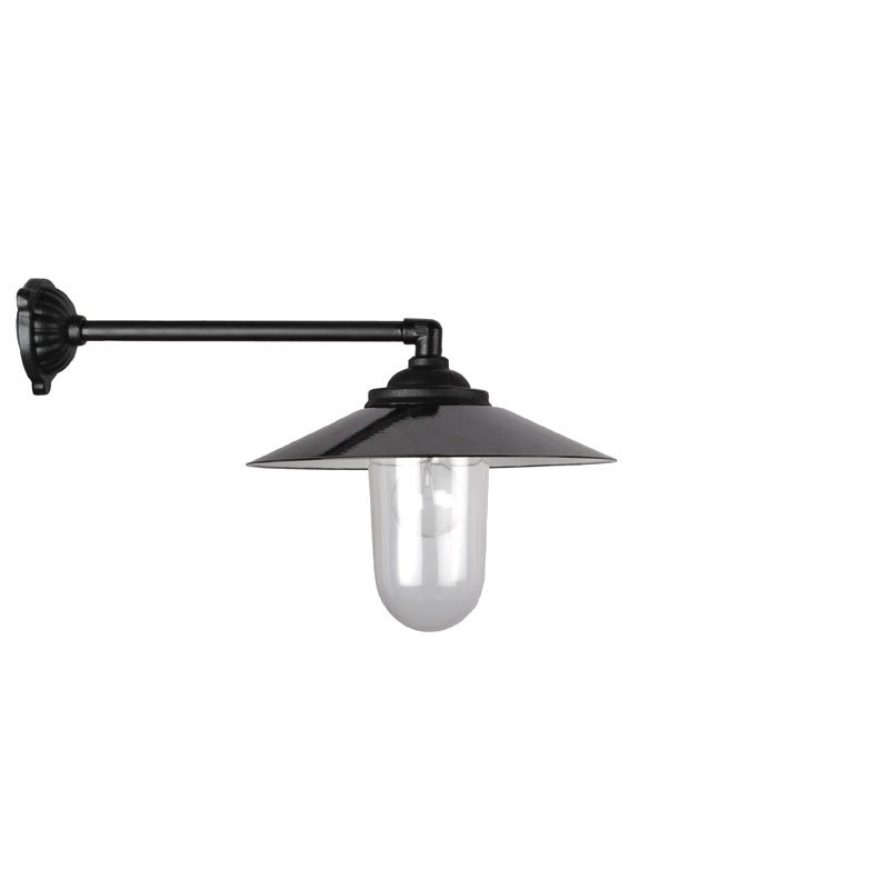 Perinteinen valurautainen tallivalaisin, suoralla varrella.