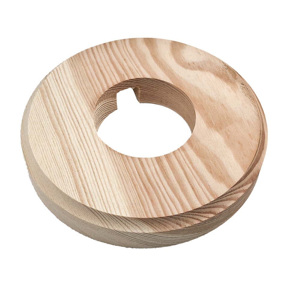 Keskellä halkaisijaltaan noin 5 cm aukko (kuvasta poiketen) ja takana valmis ura pintavetojohdolle.