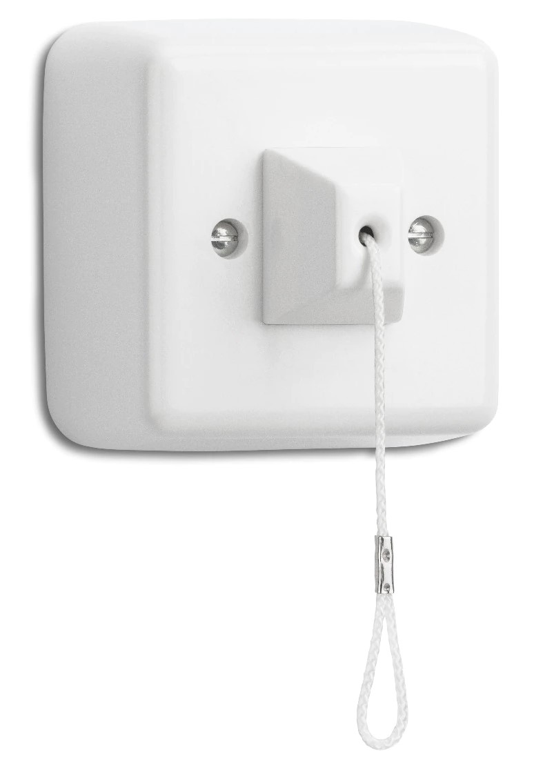 Tämän pinta-asennettavan kytkimen voi asentaa sekä kattoon että seinälle.
