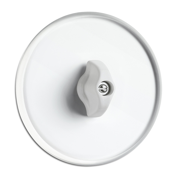 Duroplast -muovi, valkoinen. Kehys lasia.