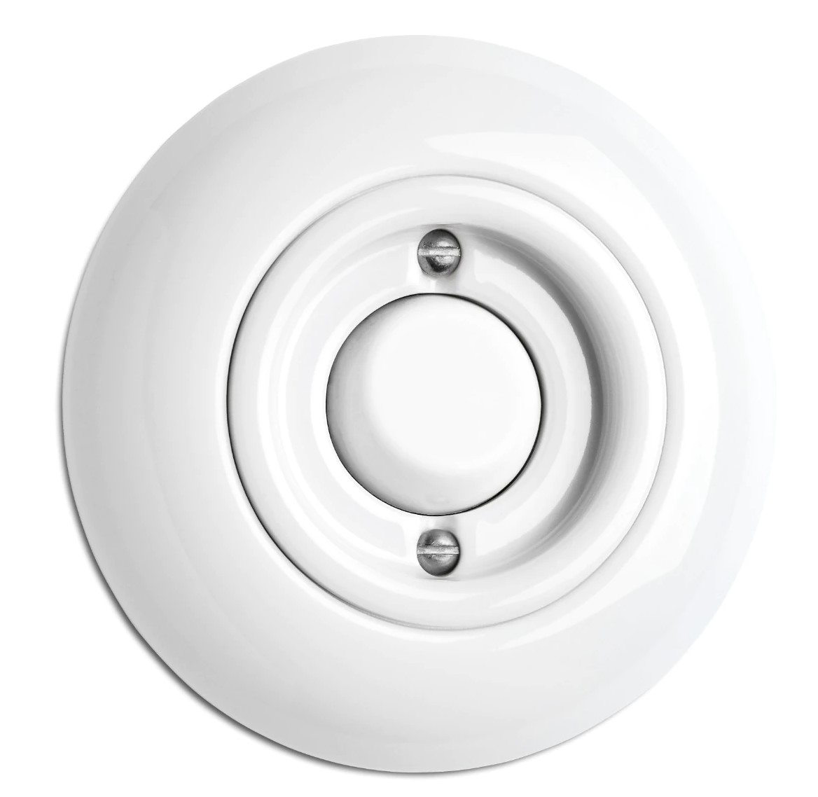 Seinään uppoasennettava posliininen keinukytkin, ns. vaihtokytkin (6-kytkin).