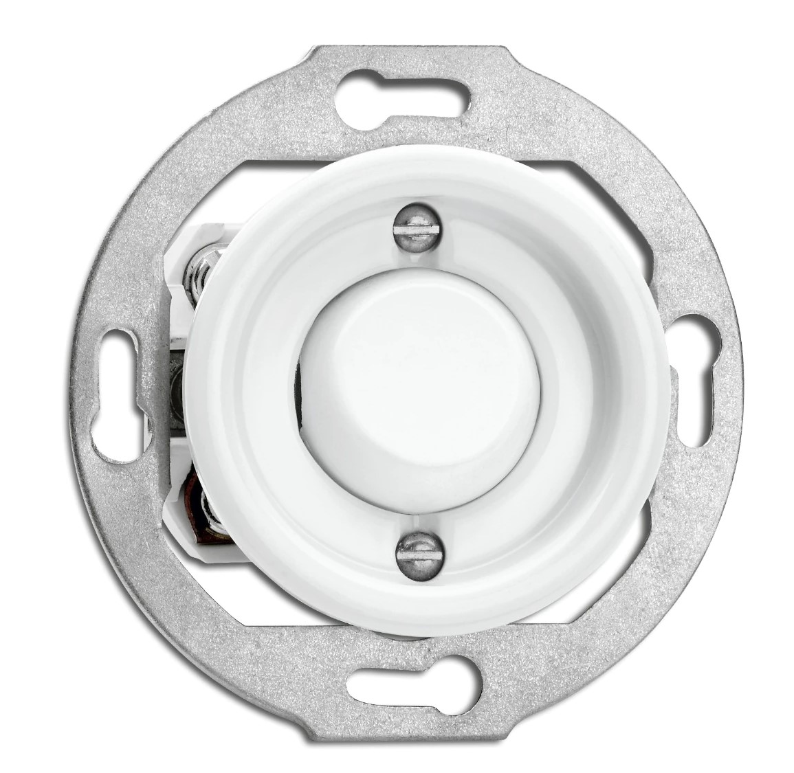 Materiaali Taustalevy posliinia ja painonappi duroplastia, valkoinen.