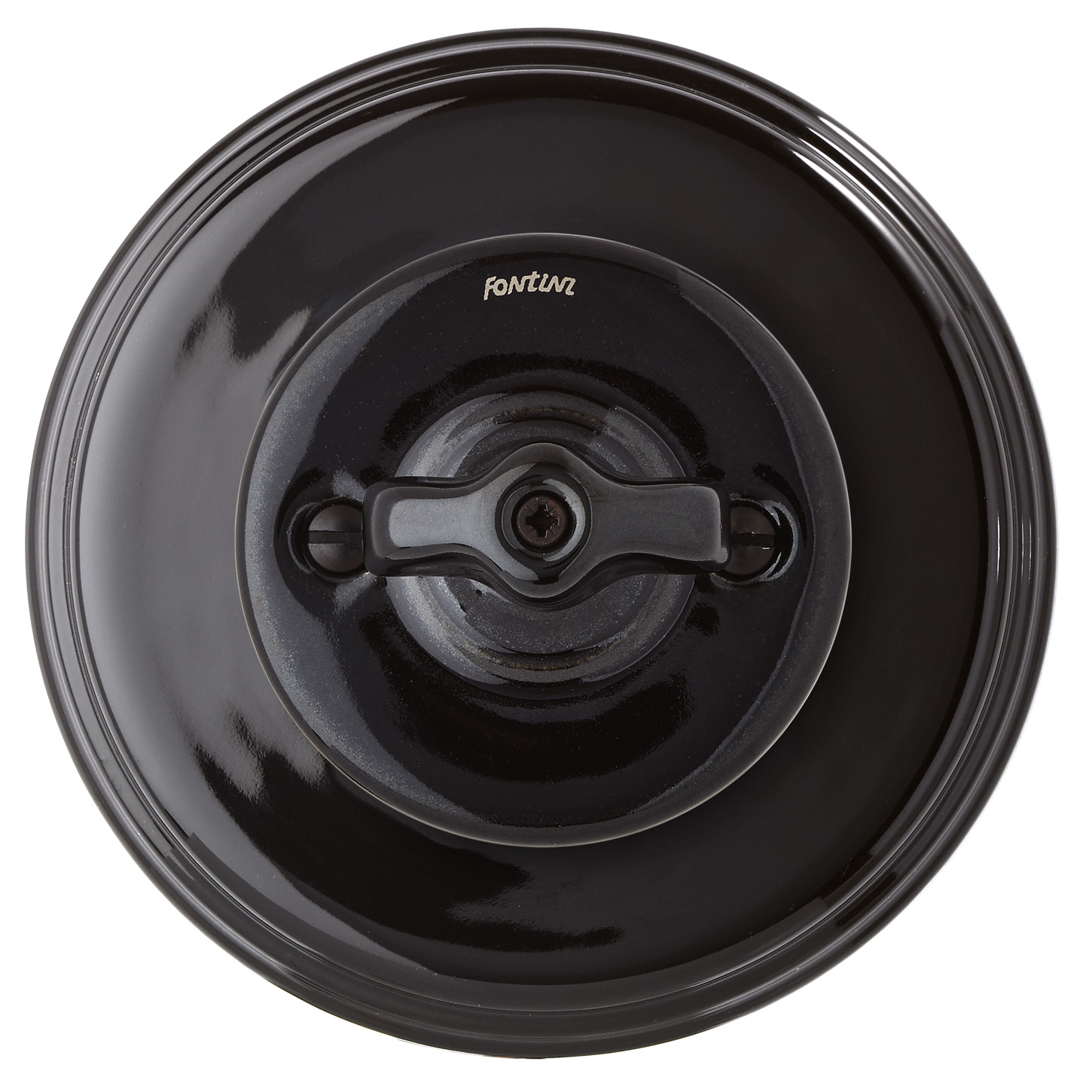 Seinään uppoasennettava väännettävä valkoinen valokatkaisin, ns. vaihto- tai porraskytkin (ns. 6-kytkin).