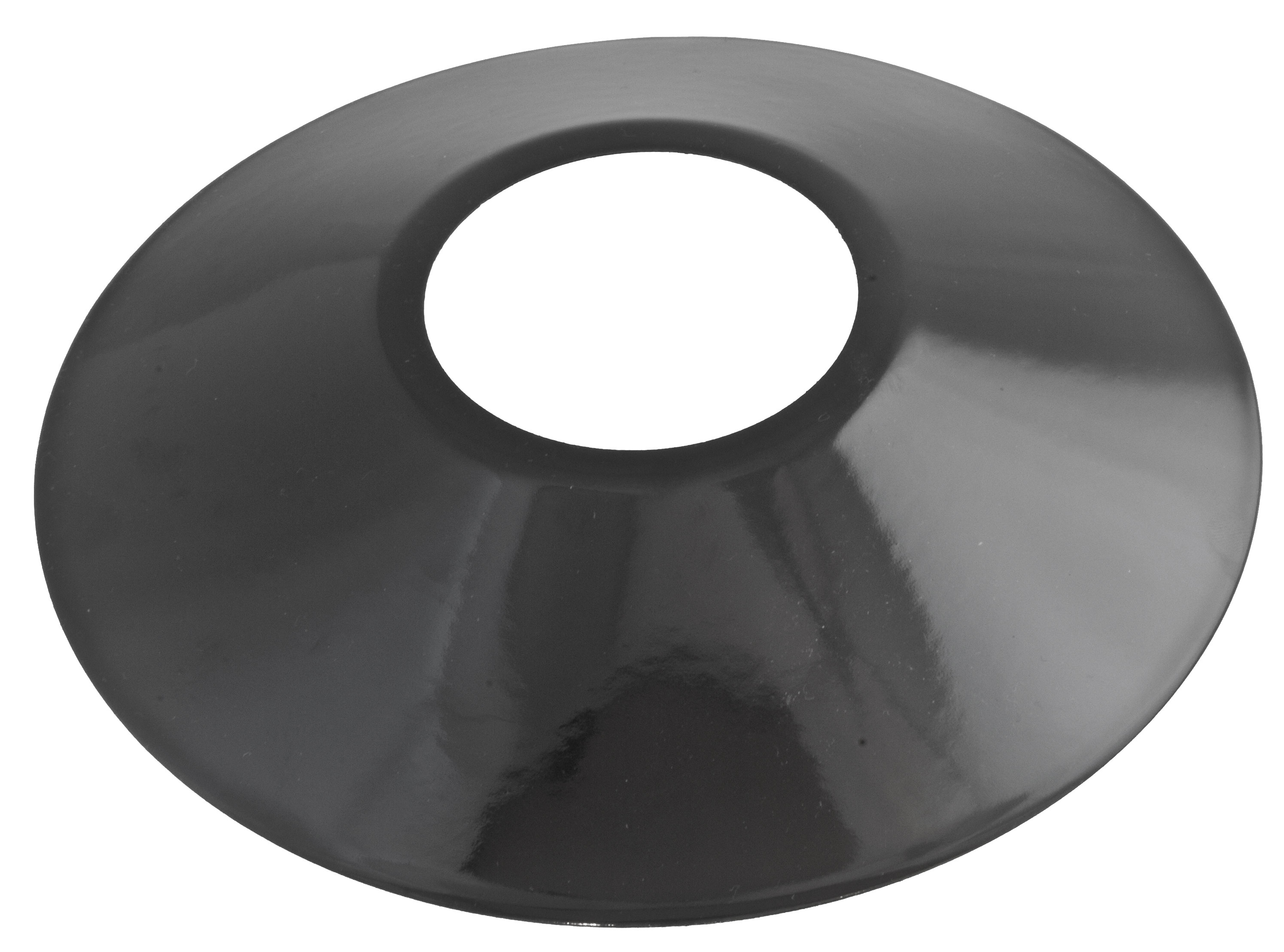 Emaloitu pelti, musta. Sisäpuolelta valkionen mustalla reunuksella.