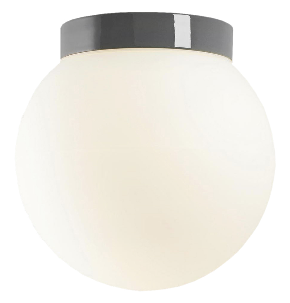 Valaisimen kanta on posliinia, harmaa. Kupu mattapintaista opaalilasia.