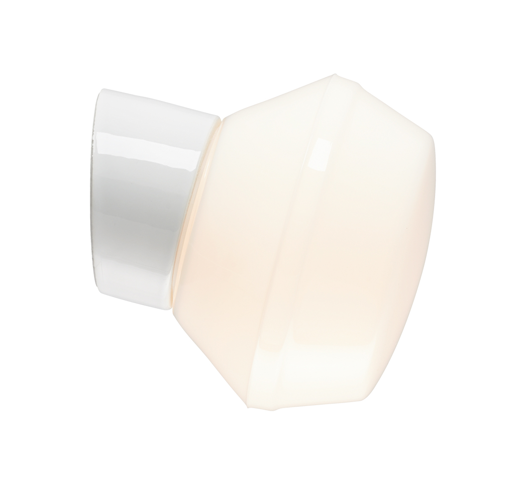 Valaisimen kanta on valkoista posliinia. Kupu kiiltävää opaalilasia.
