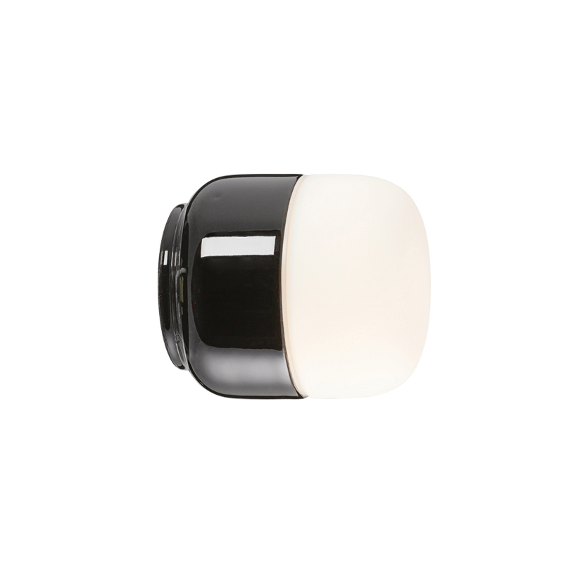 Valaisimen kanta on mustaa posliinia. Kupu mattapintaista opaalilasia.