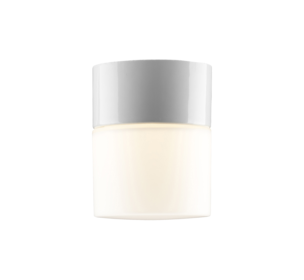 Posliinirunkoinen katto- tai seinävalaisin, joka sopii myös kosteisiin tiloihin sekä ulos.