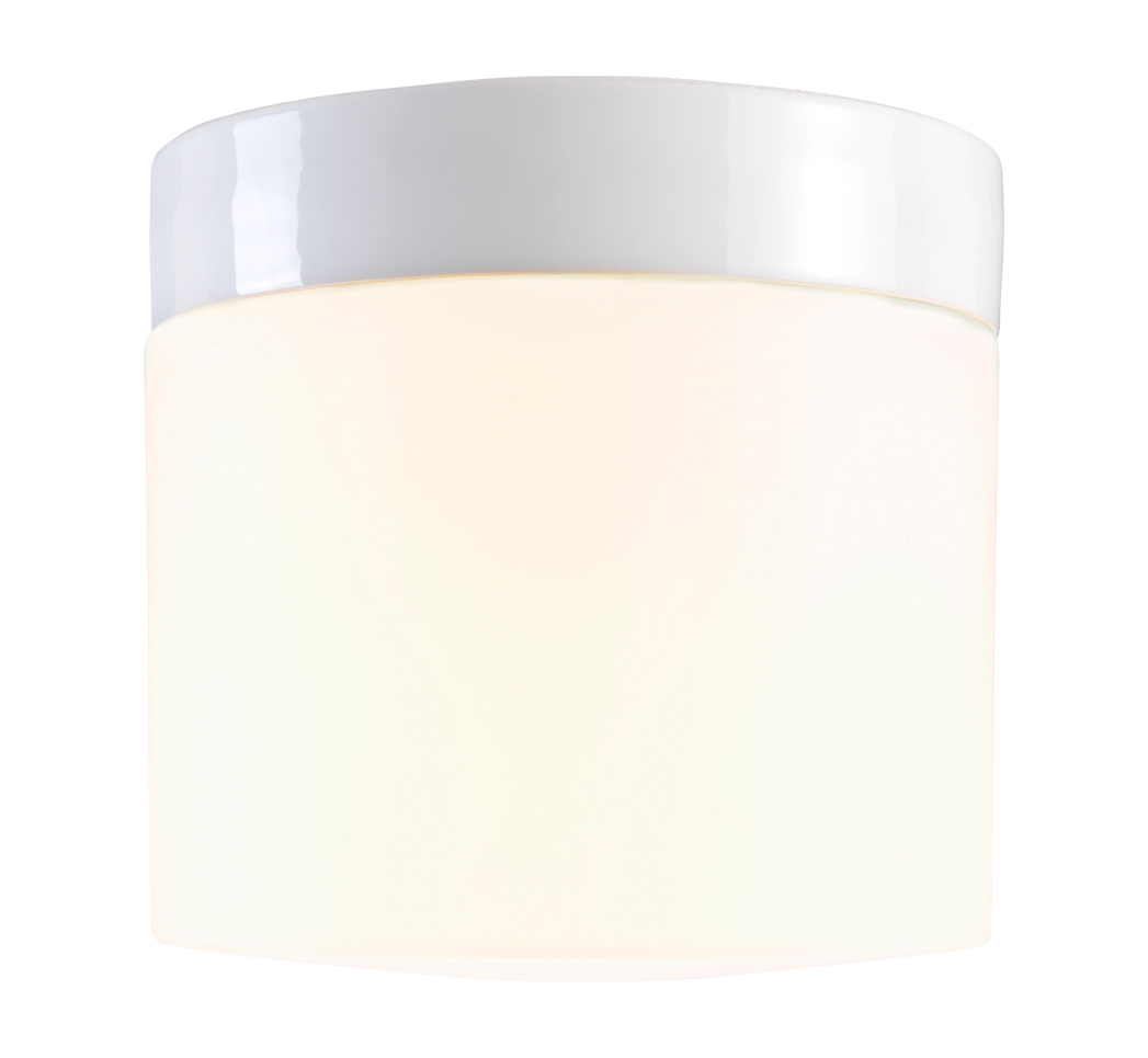 Seinään tai kattoon kiinnitettävä posliinivalaisin lasikuvulla Opus-valaisinsarjasta.