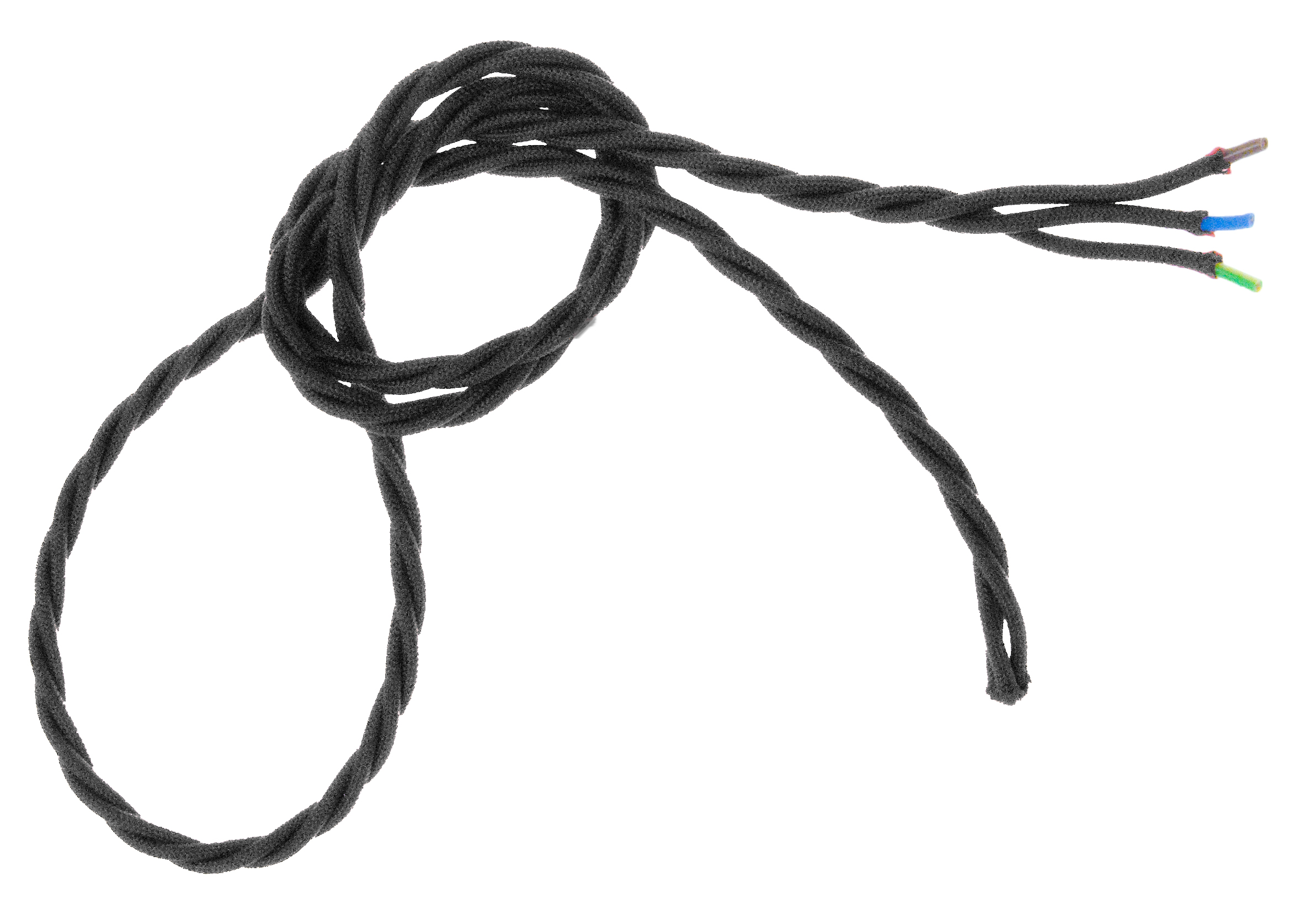Punottu kangaspäällysteinen sähköjohto, musta.