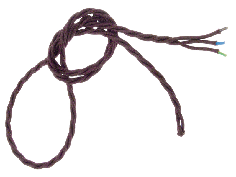 Punottu kangaspäällysteinen sähköjohto, tummanruskea.