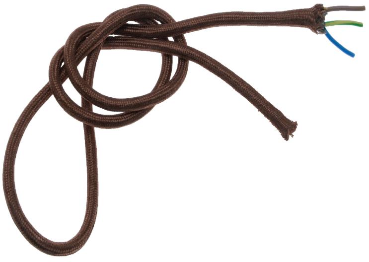 Sileä kangaspäällysteinen sähköjohto, tummanruskea.