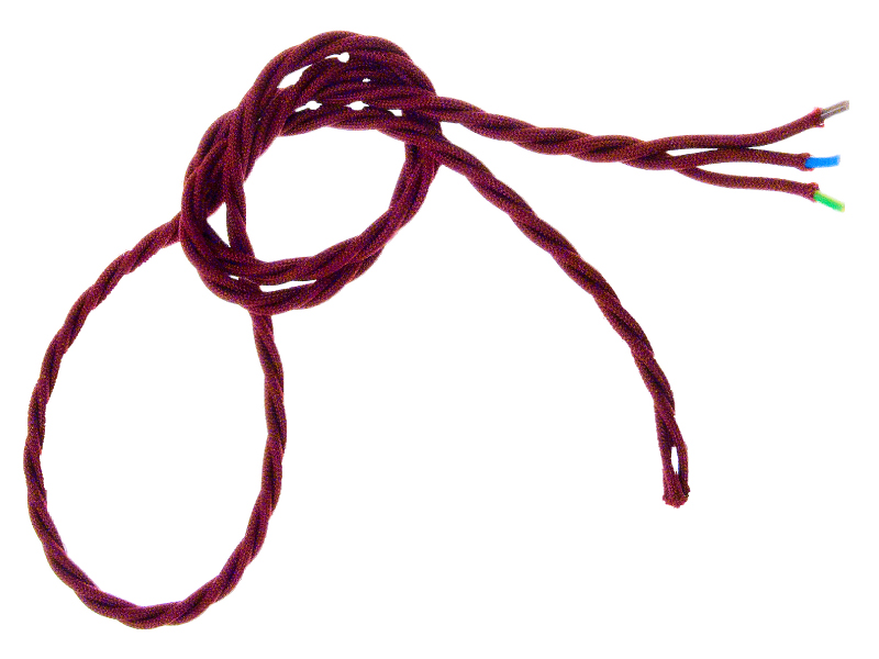 Punottu kangaspäällysteinen sähköjohto, viininpunainen.