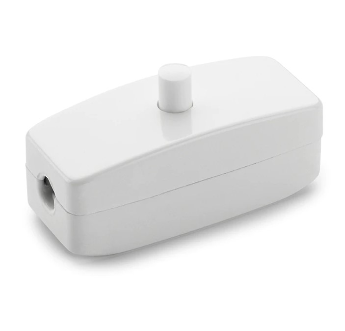 Valkoinen Duroplastista valmistettu kytkin napsahtaa kuten ennen vanhaan.