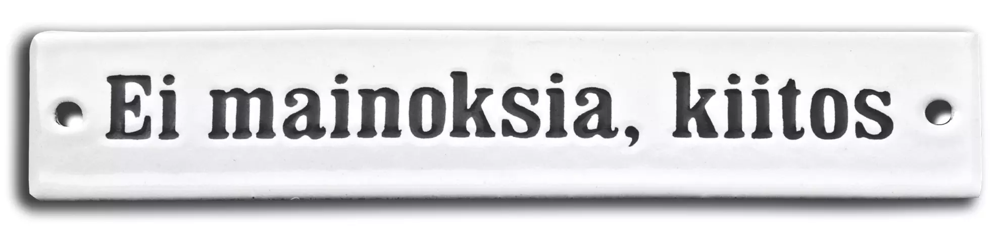 Ei mainoksia, kiitos -emalikyltti.