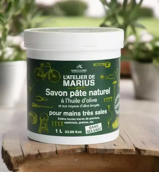 Marius Fabren hyytelömäinen oliiviöljypohjainen kuoriva Marseille -käsienpesuaine on tehokas likaisten käsien puhdistusaine. Pesuaineessa on oliivinkivimurskaa, joka poistaa hankalimmankin lian hellävaraisesti. Saippua ei sisällä synteettisiä ainesosia.