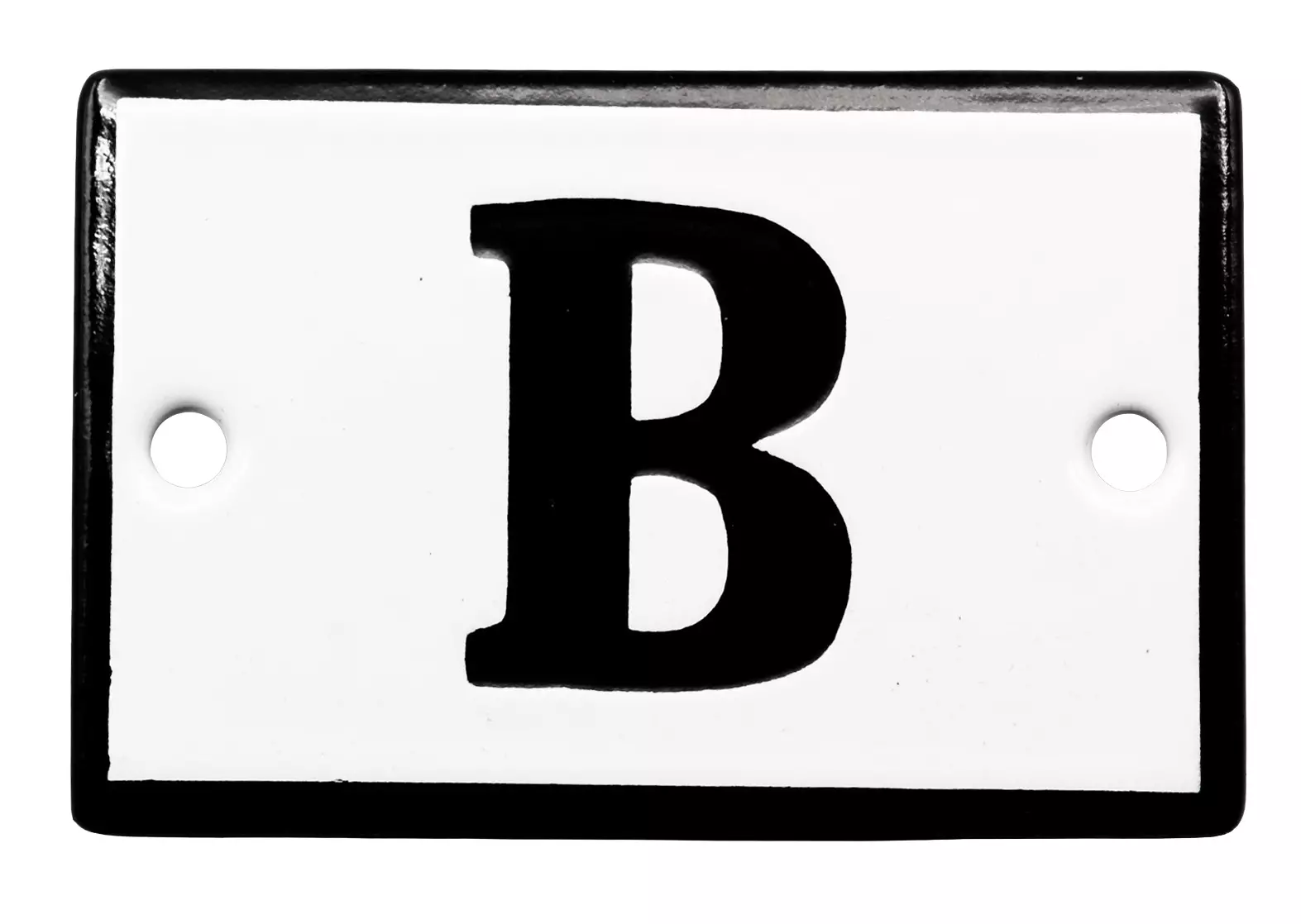 Pieni kirjainkilpi on tuttu kylttimalli vanhojen kerrostalojen mm. porraskäytävien ovien yläpuolelta. Kyltin teksti on "B", kylttiä kiertävällä kehyksellä.