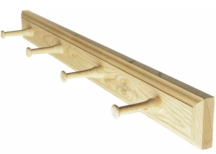 1870 -luvulta peräisin olevan mallin mukaan valmistettu naulakko on tukeva ja käytännöllinen moneen tarkoitukseen. Naulakossa on sorvatut nupit ja taustalevyn reunat profiloitu.