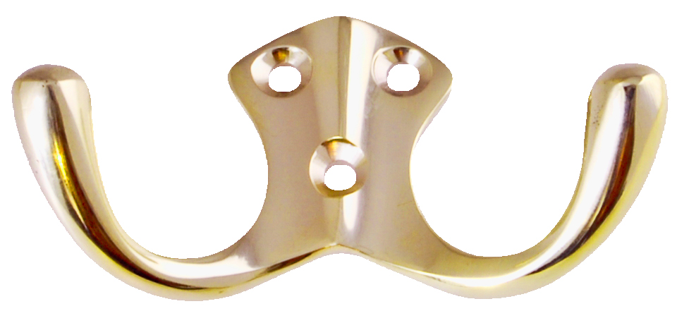 Seinään kiinnitettävä messinkinen pyyhekoukku, kahdella koukulla.